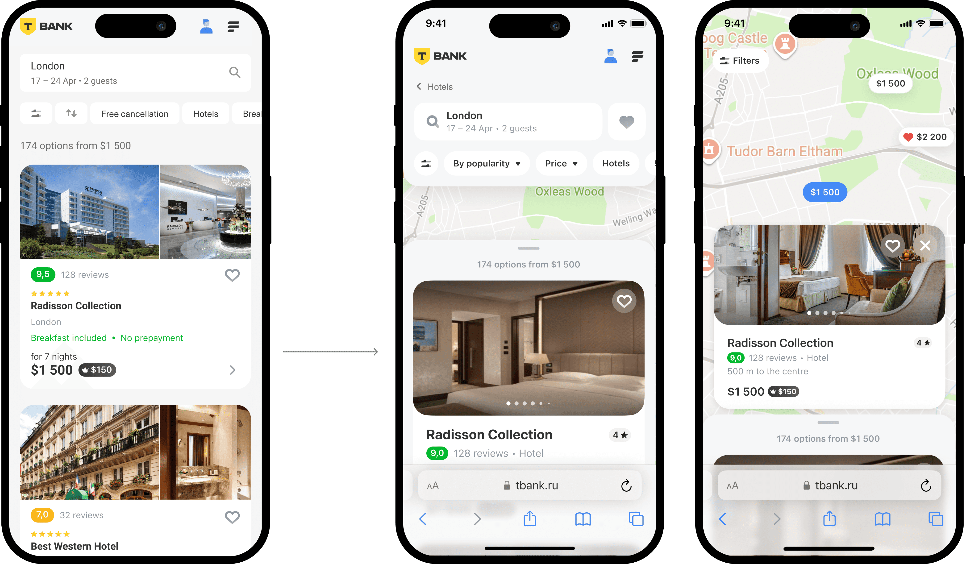 ✦ merged the map and list into a single page, which reduced technical support costs for the search results by 1.5x, since previously the development team maintained separate, independent pages for the list and the map