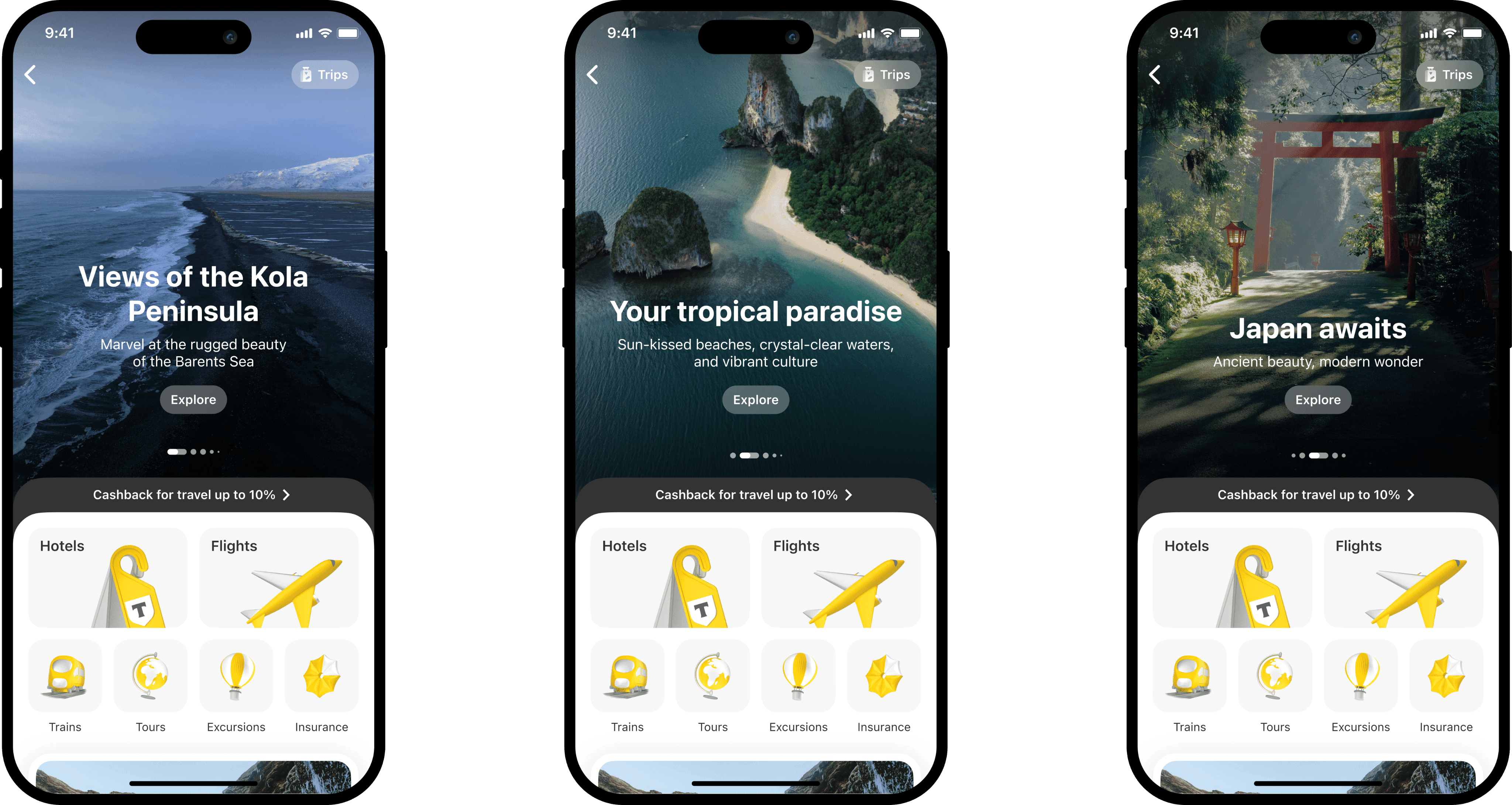 Redesigned the travel section as part of a new ecosystem approach, focusing on inspiration, seamless planning, and in-trip support. Defined hypotheses, prioritized key JTBD, launched an MLP